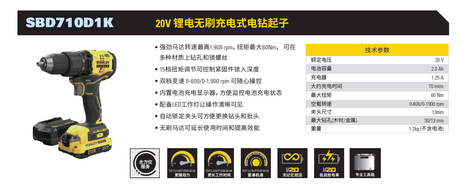 20V 锂电无刷充电式锂电钻(吹塑箱)1 x 2.0Ah电池